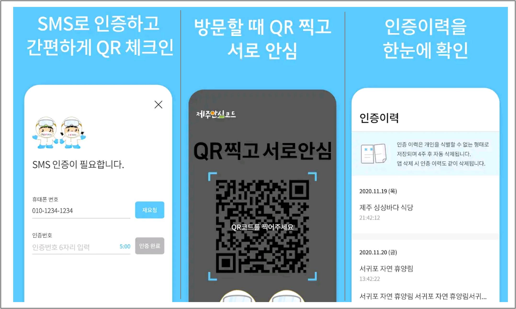 물론 코로나로부터 안전하기 위해서는 이동을 최소화하는 방법이 가장 확실하겠습니다. 여행이나 출장 등으로 제주도를 방문할 계획이나 현재 방문 중이시라면 ‘제주안심코드’를 꼭 설치하시어 조금이나마 안전한 방문을 하시기 바랍니다.